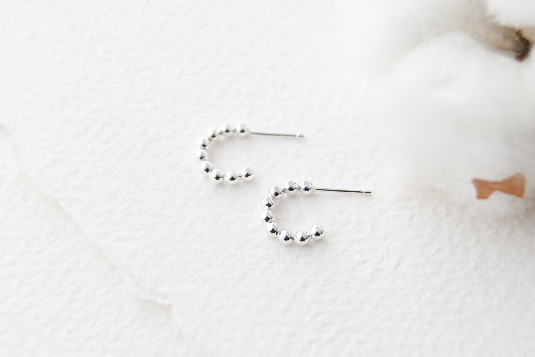 Small, thick, beaded huggie hoop earrings. These are a great wardrobe staple piece. These small huggie hoops look great alone or part of an earring stack.