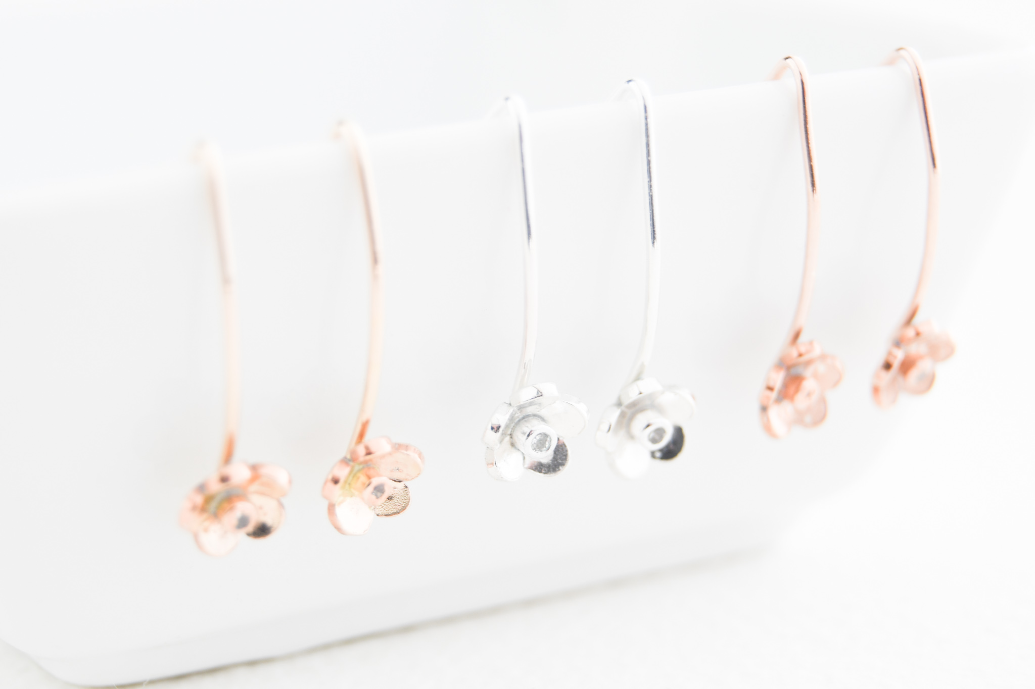 - Hand cut flowers, hand fabricated ear hooks