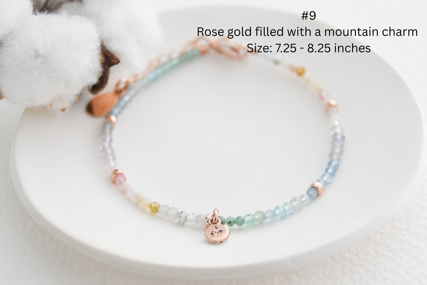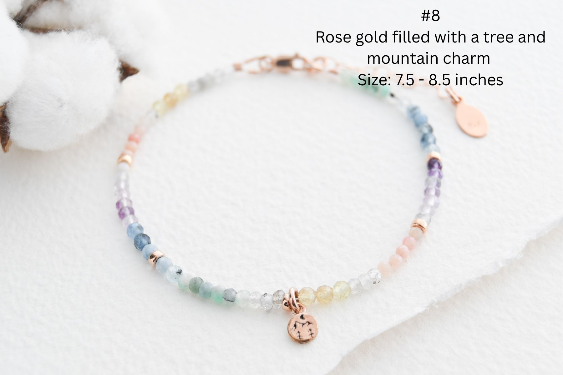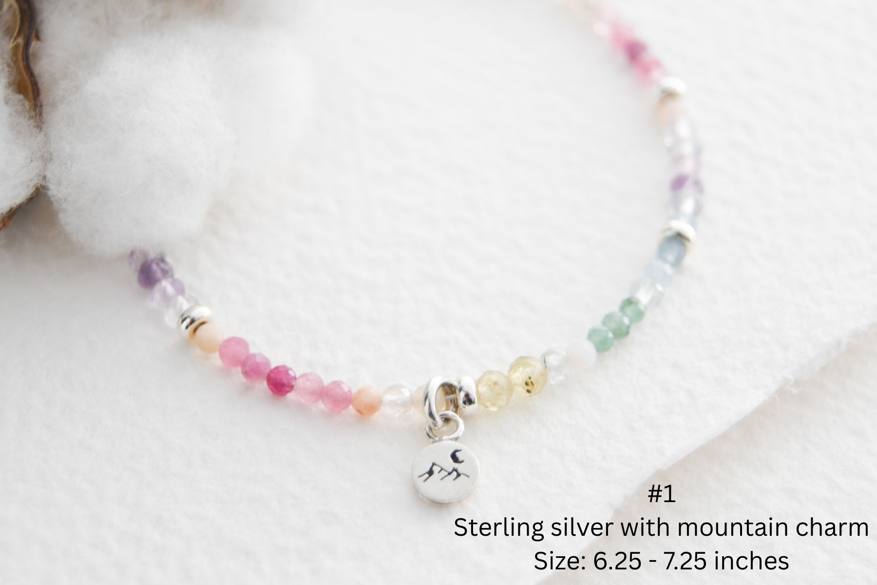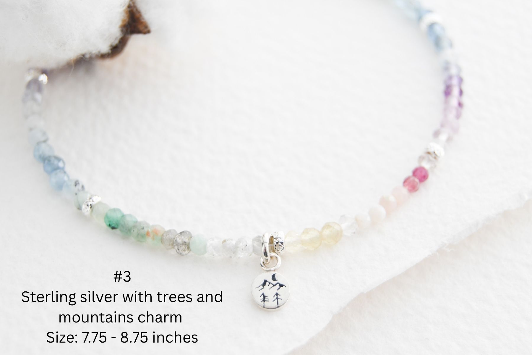 - Gemstone size: between 2-3.5mm depending on the bracelet